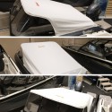 Havnekalesje til Buster X (fra og med 2021) Denne festes med glidelås til vindskjermen og borrelås mot døren i midten. På siden brukes originale Buster klipps og i motorbrønnen festes den med kalesjestrikker.