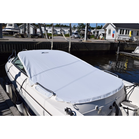 Denne passer både til Yamarin 6420 og 64DC uansett årsmodell. Det må lages hull i havnekalesjen for knappene som er plassert aktenfor vindskjermen. I havnekalesjen er det sydd på en kraftig PVC duk som forsterkning og man bruker medfølgende verktøy til dette.