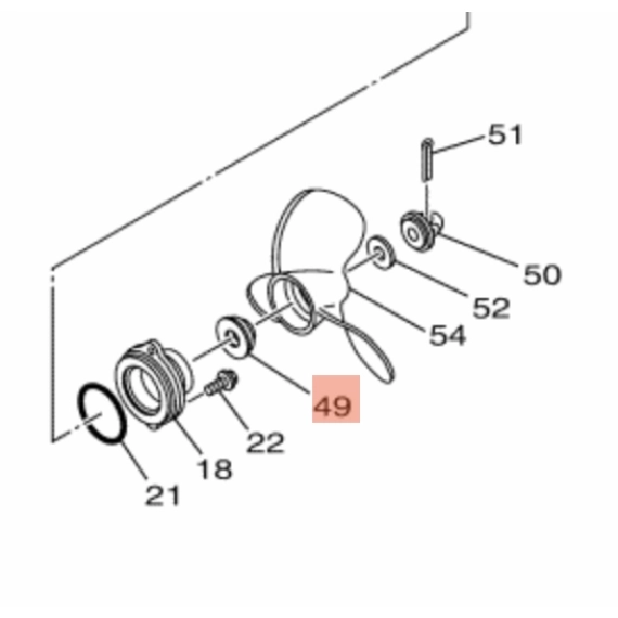 Spacer som står innerst på propellakslingen. Også kalt trøsteskive. (ThrustWasher)