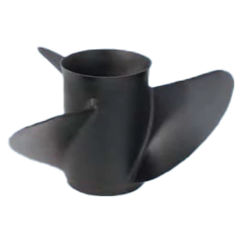 Sortlakkert stålpropell, mye brukt på Yamaha F115 4-taktere.