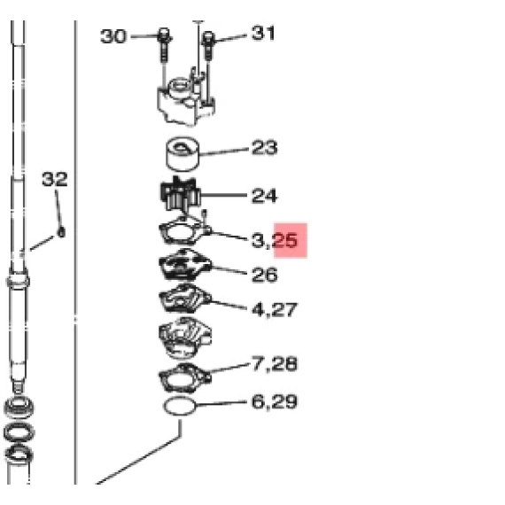 Pakning i vannpumpe mellom hus og plate. Yamaha F80A F80B F100A F100D