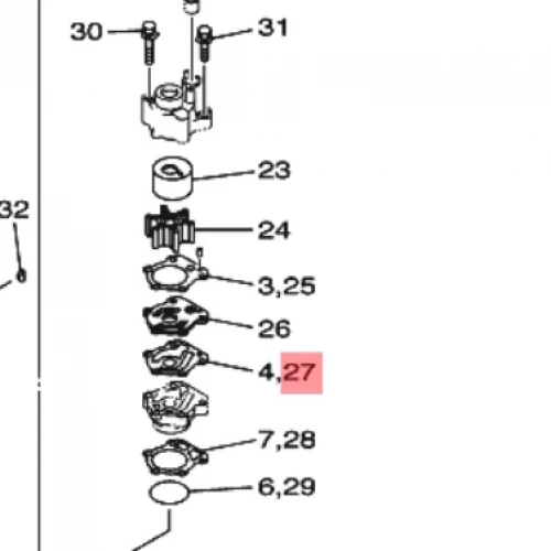 Pakning i vannpumpe under plate. Yamaha F80A F80B F100A F100D