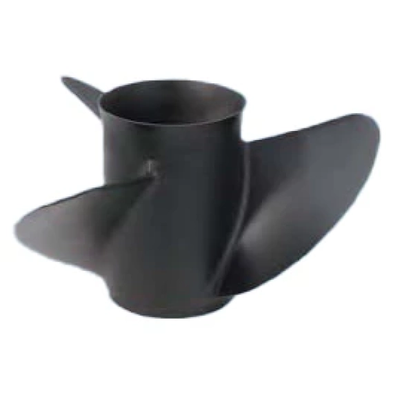 Sortlakkert stålpropell, mye brukt på Yamaha F115 4-taktere.